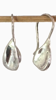 Massief zilveren afgietsels van beukennootjes als oorbellen.