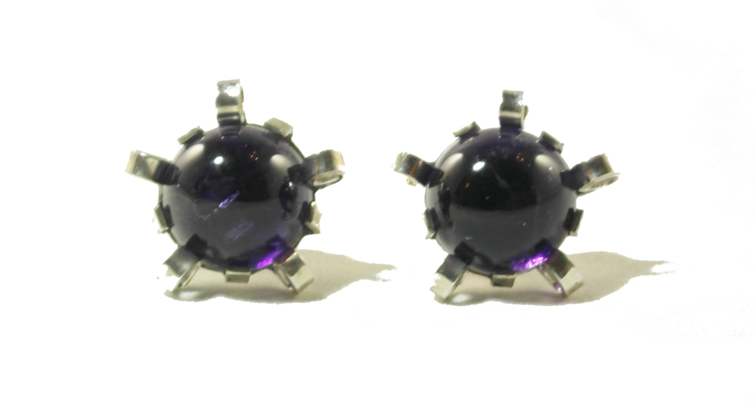 1e gehalte zilver en cabochon geslepen amethyst Ø 13 mm.